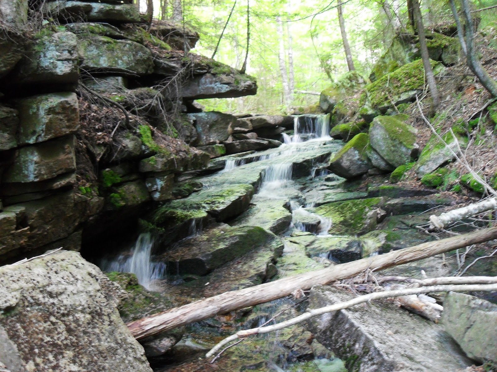 The main fall which slides down a steep rock for about thirty feet wasn’t nearly as intense as it had been last time but that gave me the opportunity to explore. I actually got to go up the ledges that the water covered in the Spring which was pretty cool, there was even a view from the top. The brook continues on up the side of Waternomee Mountain but we stopped there since the water level was so low, but I’ll be traveling up it further next Spring. While I was exploring Jaime took off her shoes and stuck her feet in the pool below the falls and relaxed before making our descent.